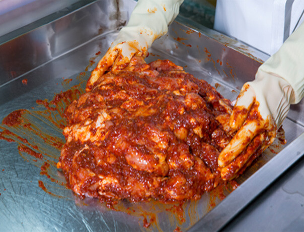 국내산 닭고기의 뼈를 발라 얇게 포를 떠서 닭갈비를 만들면 육질이 쫄깃할 뿐 아니라 양념이 고루 배어 더욱 맛있습니다.