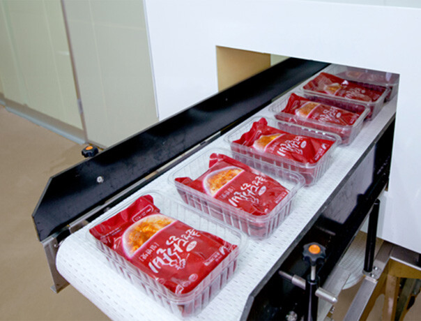 포장이 끝이 아닙니다. 금속검출기를 통과해야만 닭갈비로 가치가 인정됩니다.