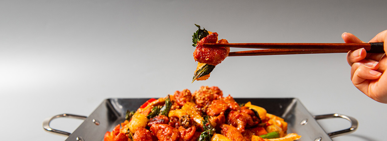 닭갈비의 맛은 조미료의 맛이 아니라 국산고춧가루가 맛있어야 합니다. 100% 국내산 고춧가루를 사용하여 한국 밥상을 지키고 있습니다. 또한, 국내산 냉장양파, 냉장마늘, 냉장생강은 번거로움을 감수하며 양념할 때마다 직접 갈아서 사용하여 엄마가 해주시는 건강한 수제 양념으로 정갈한 맛을 더했습니다.
